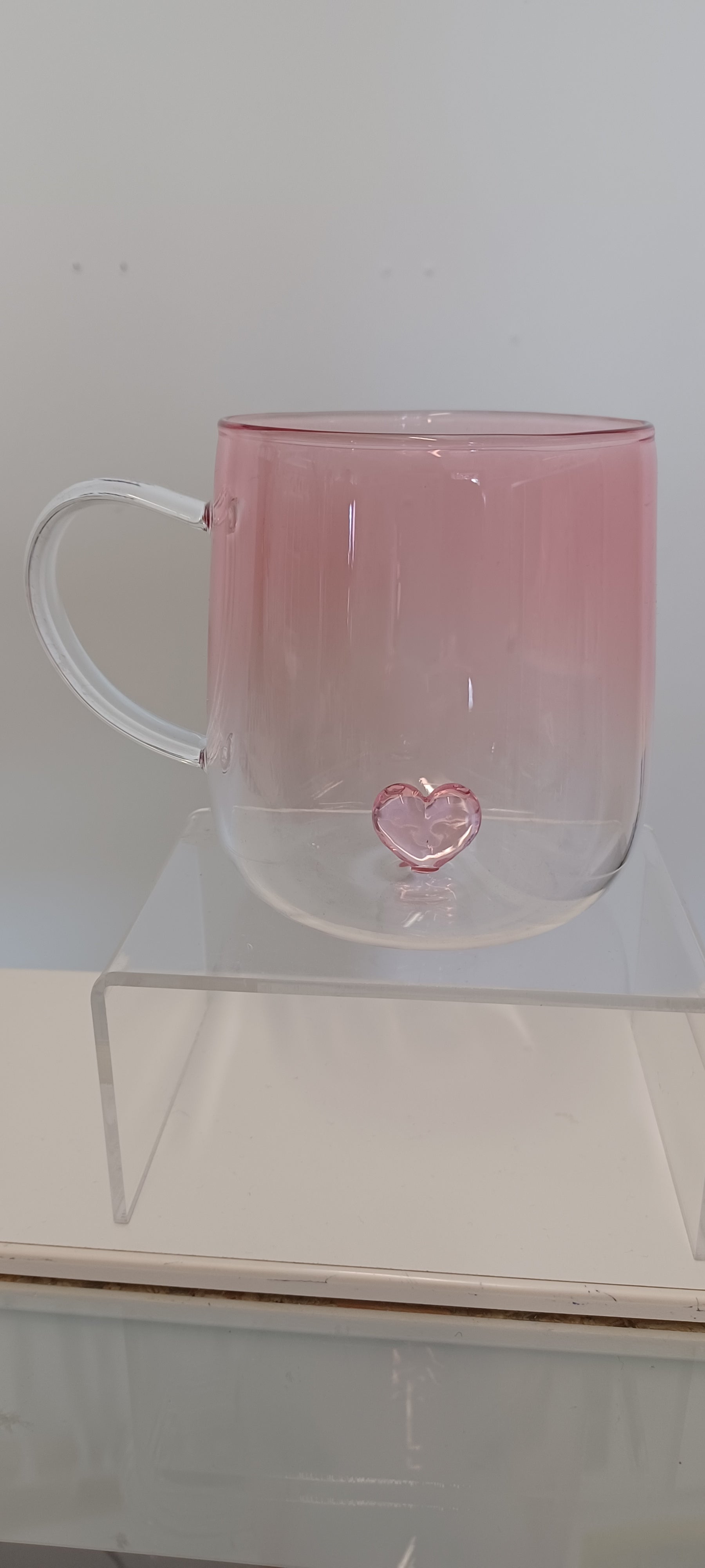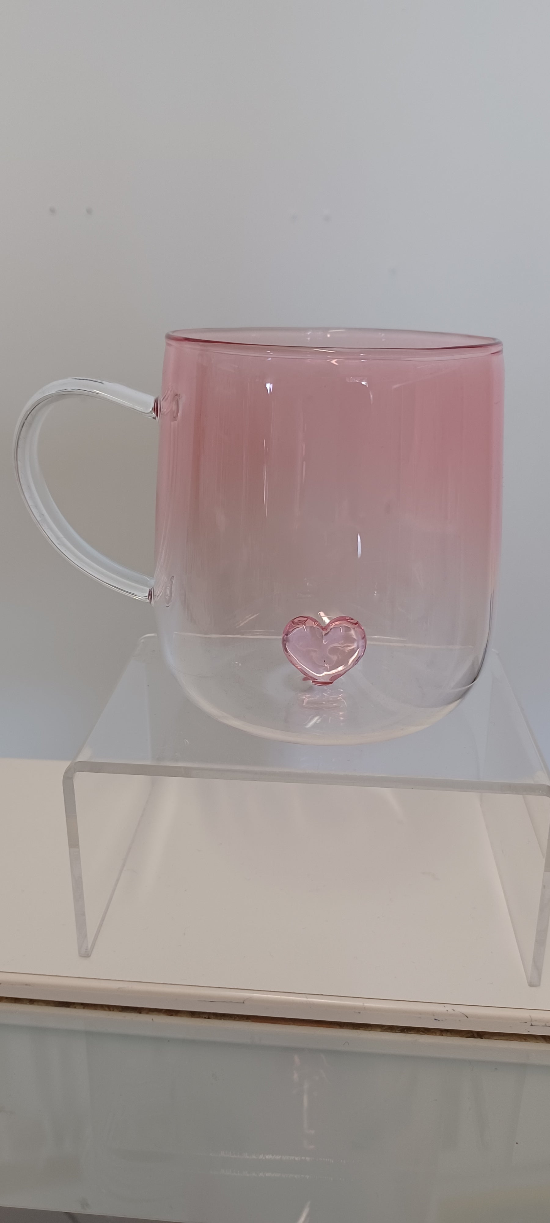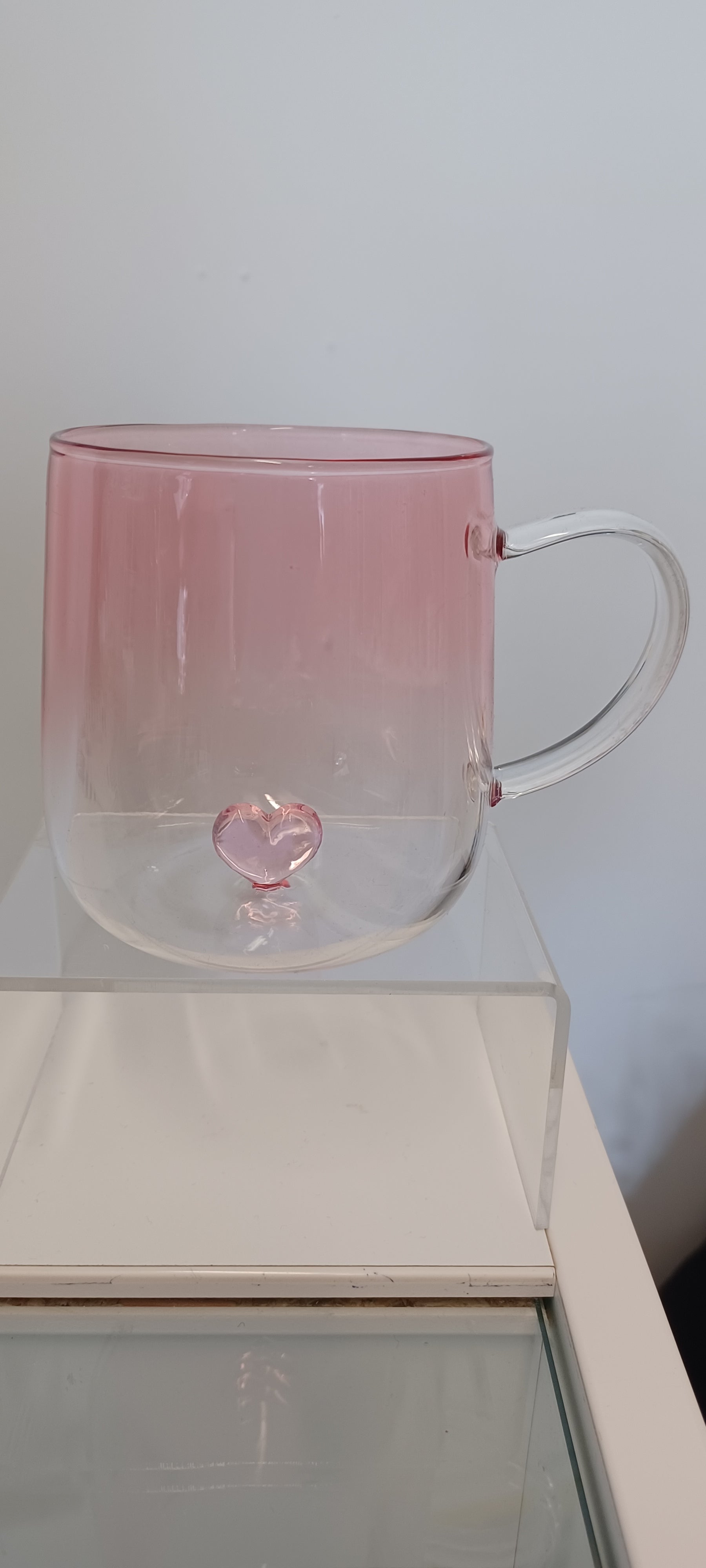 Glass Cup. Glass Cup with pink heart, heat resistant.