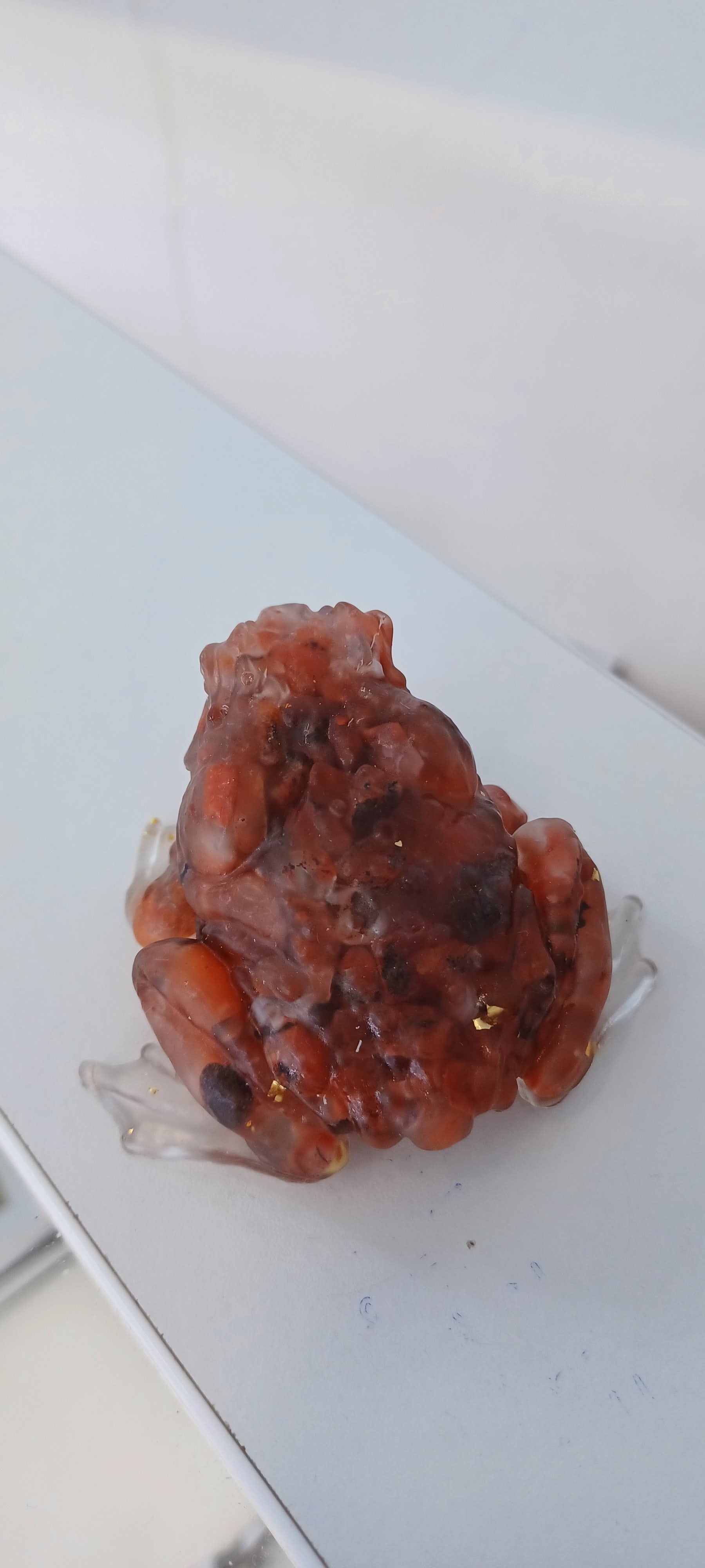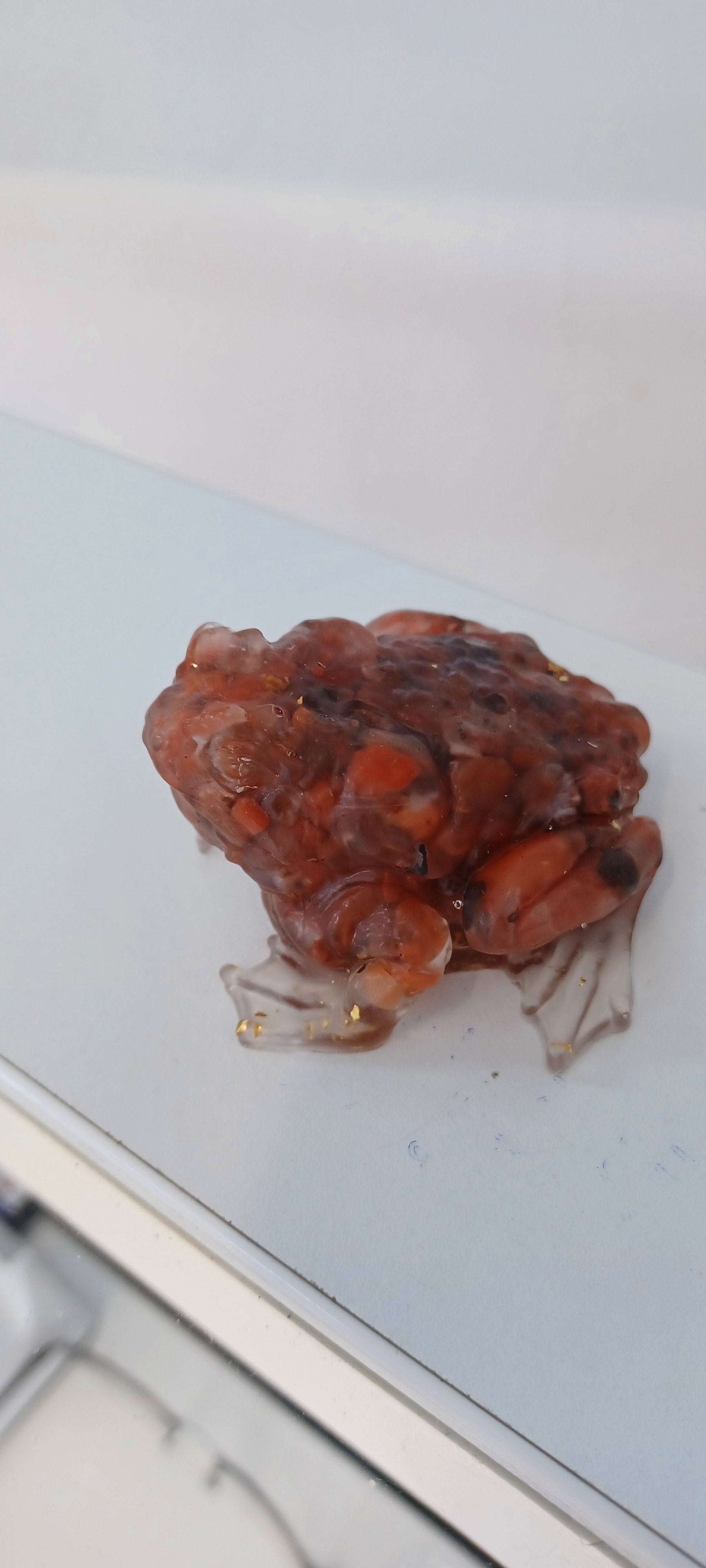 Resin toad with real crystals inside.